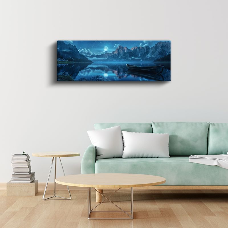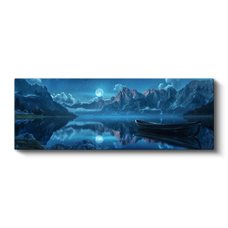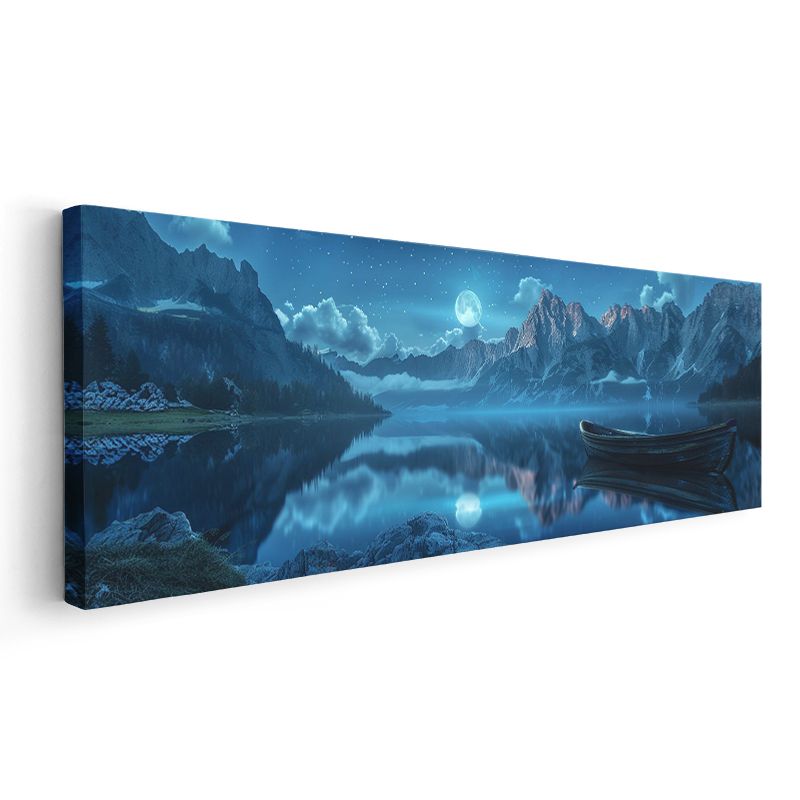Dağların Aynası - Mistik Göl ve Tekne Manzarası Kanvas Tablo