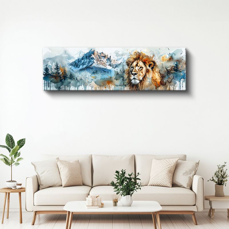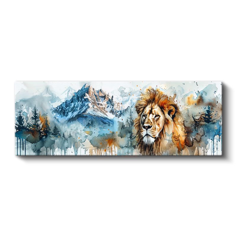Dağların Hakimi - Suluboya Efektli Aslan Portresi Kanvas Tablo