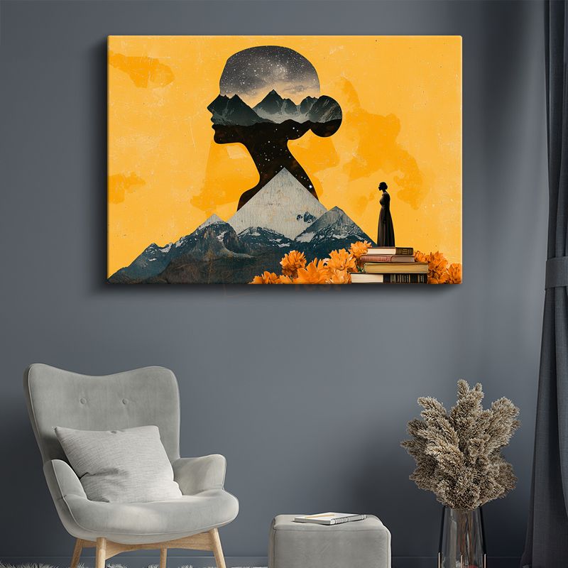Dağların Ruhu - Sarı Gökyüzünde Beliren Düşünceler Kanvas Tablo