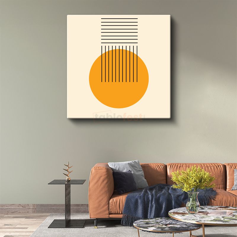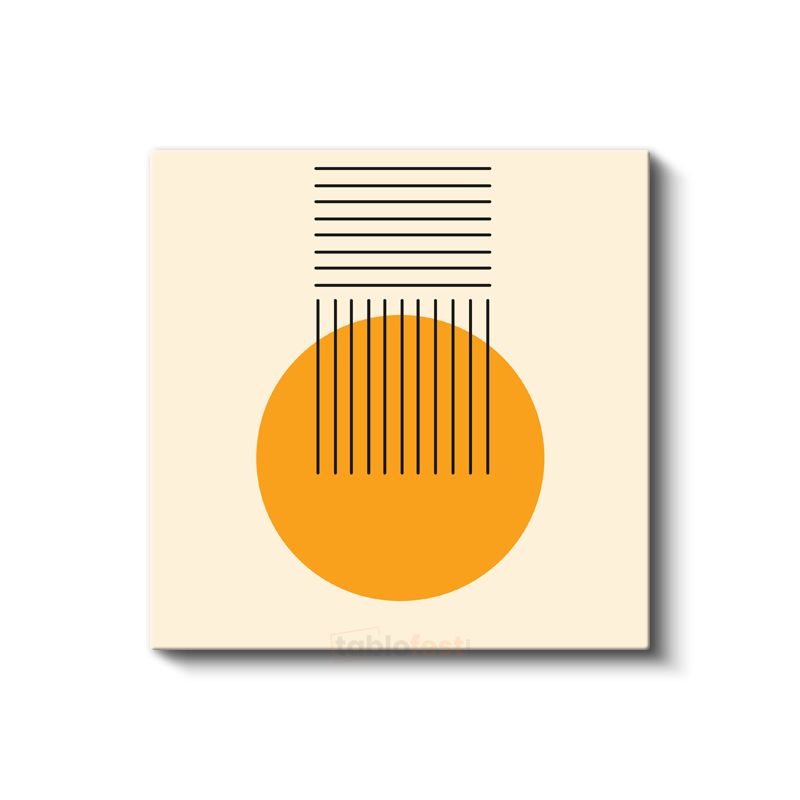Dairesel Denge - Turuncu Küre ve Çizgi Detaylı Minimalist Kanvas Tablo