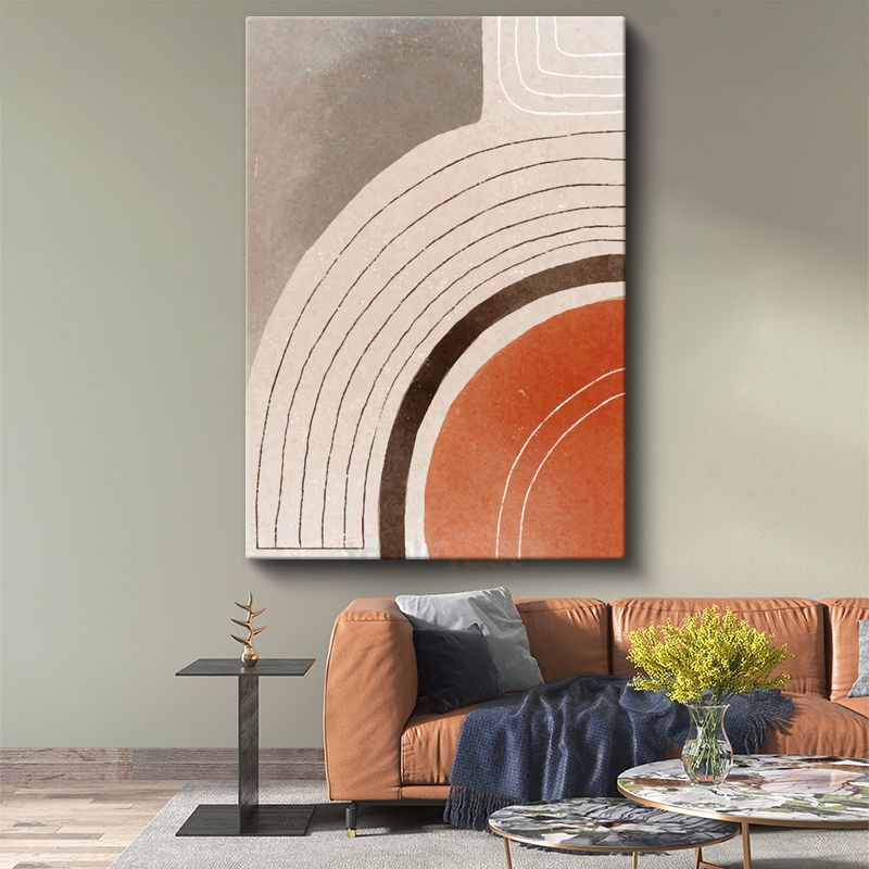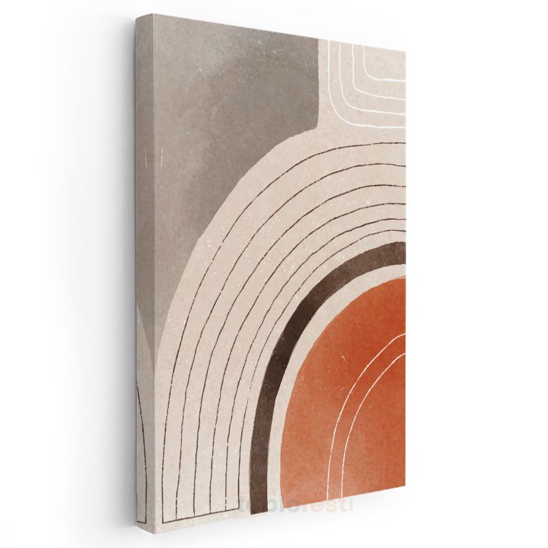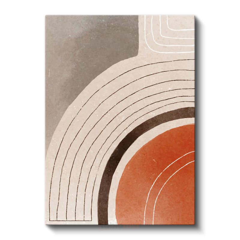 Dairesel Hareket - Katmanlı Çizgiler ve Turuncu Vurgu Soyut Kanvas Tablo