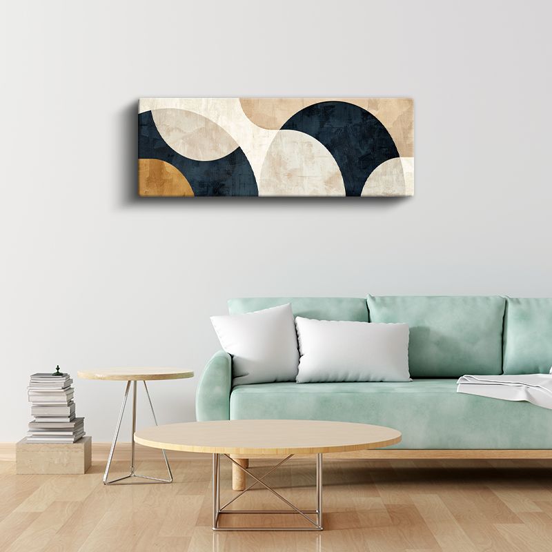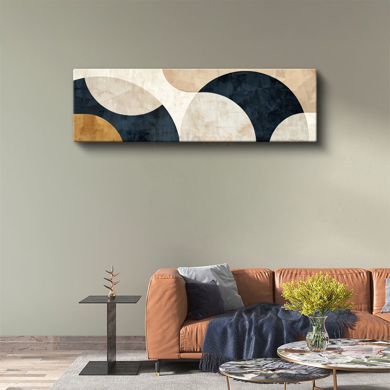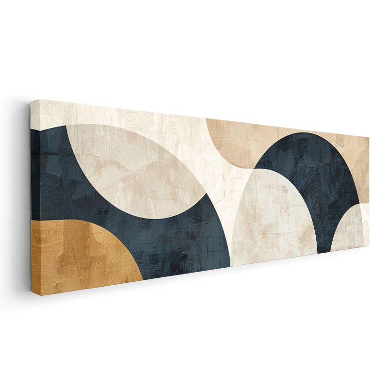 Dairesel Harmoni - Lacivert Bej Soyut Geometri Kanvas Tablo
