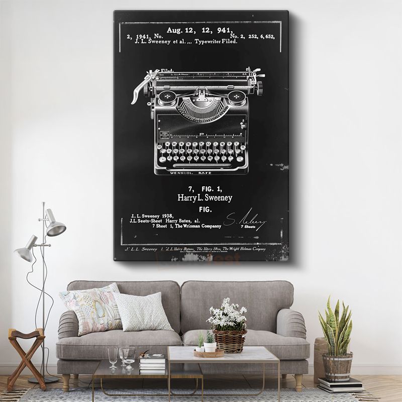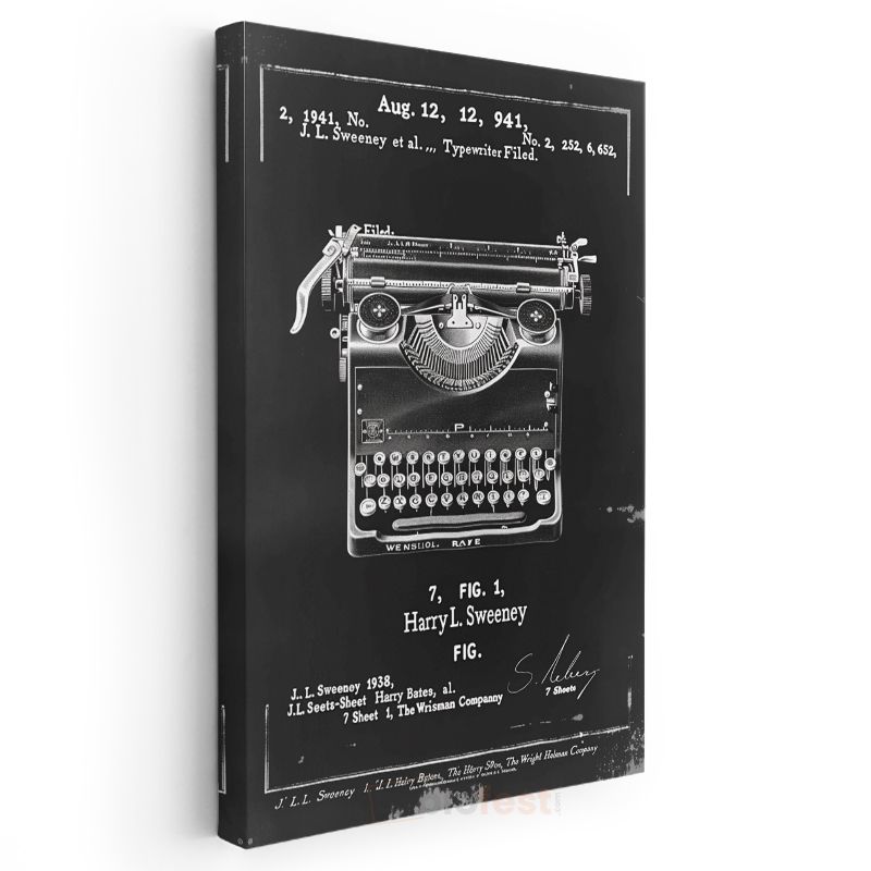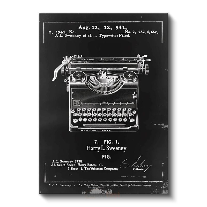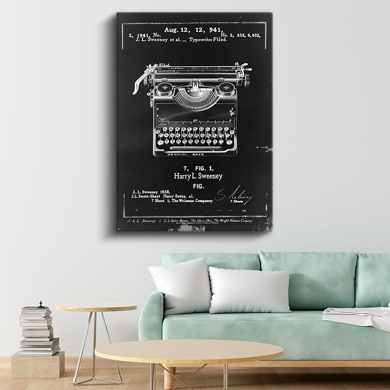 Daktilo Patenti - 1941 Tarihli Nostaljik Tasarım Kanvas Tablo