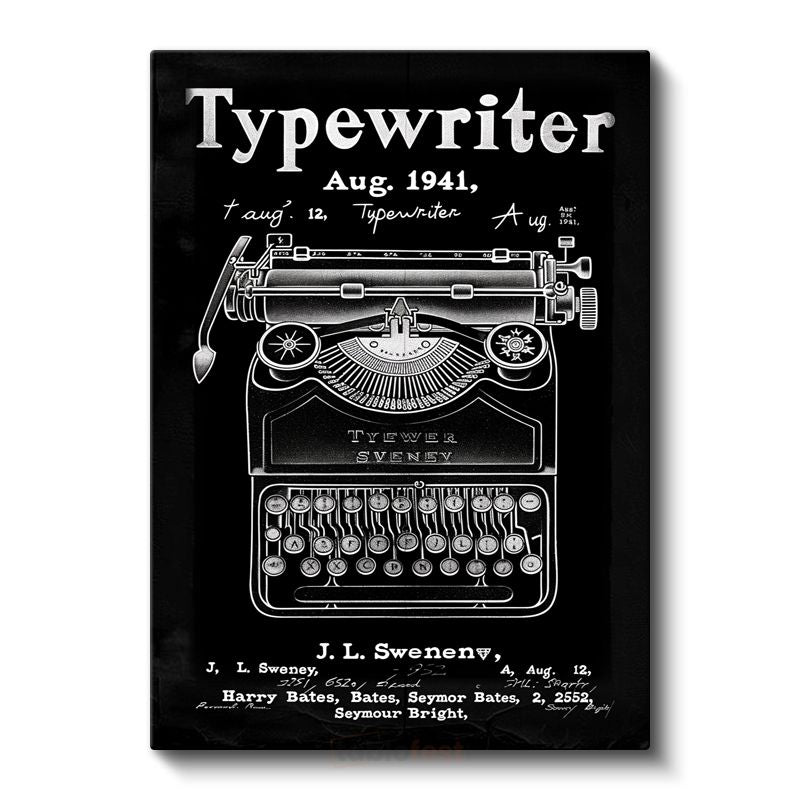 Daktilo Üstten Görünüm - 1941 Yazı Makinesi Tasarımı Kanvas Tablo