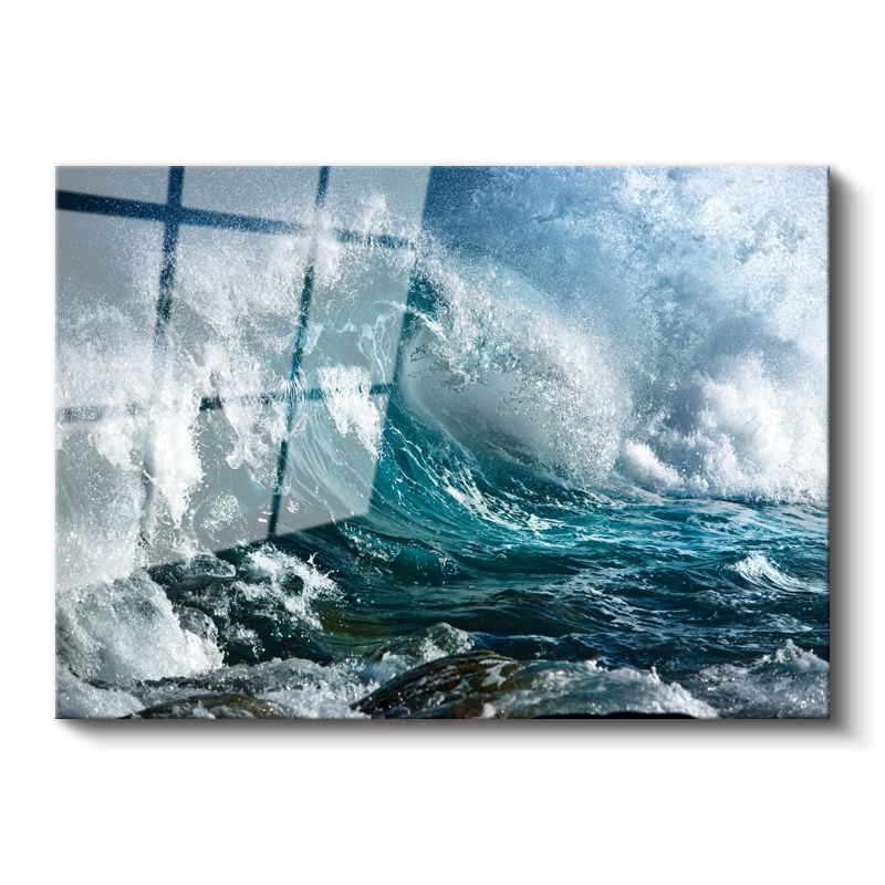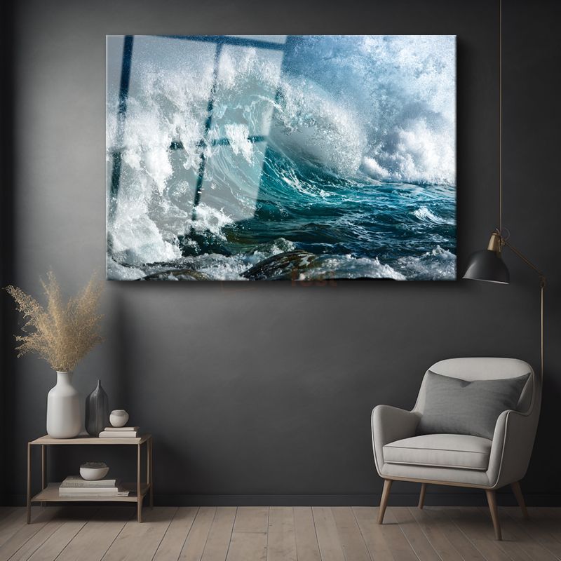 Dalgaların Dansı - Turkuaz Suyun Muhteşem Hareketi Cam Tablo