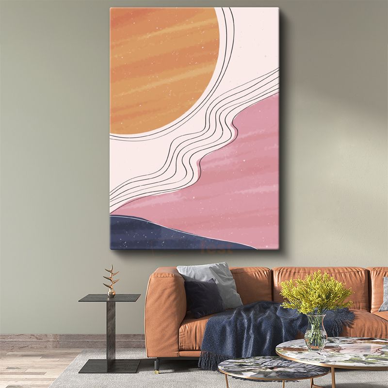 Dalgalı Çizgiler - Pastel Renk Blokları Soyut Kanvas Tablo