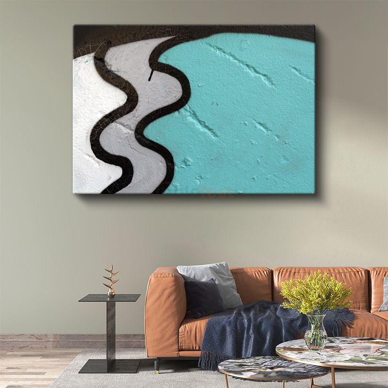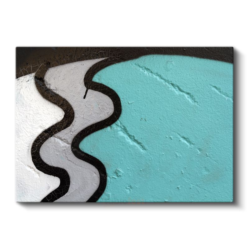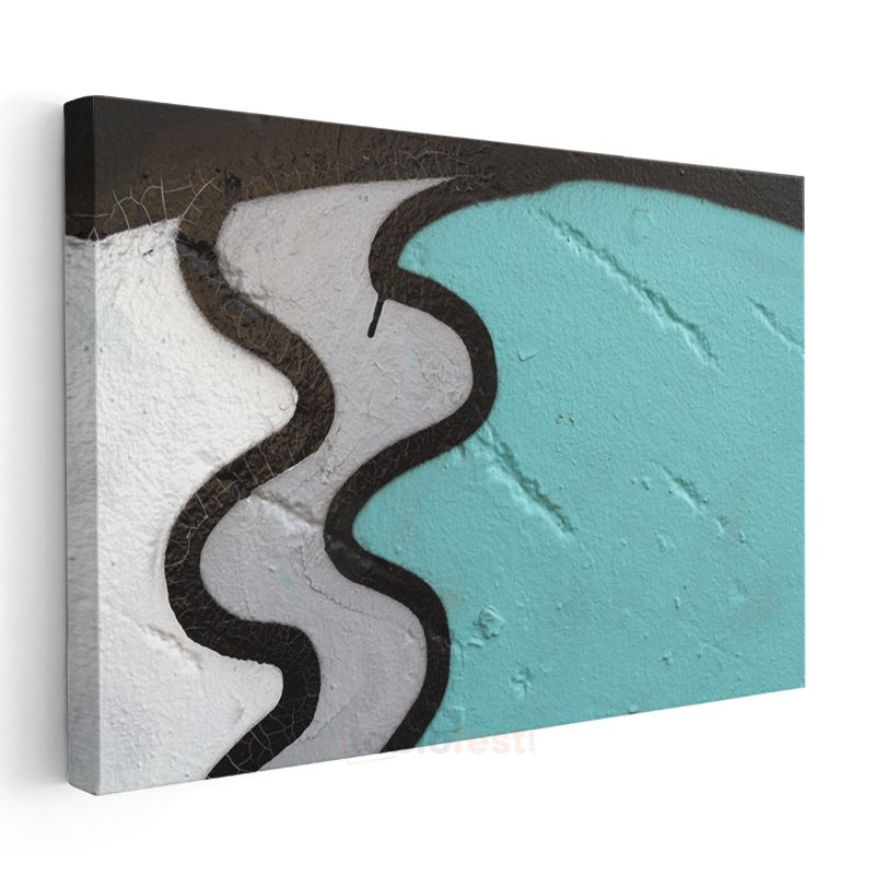 Dalgalı Yolculuk - Turkuaz Siyah Geometrik Formlar Kanvas Tablo