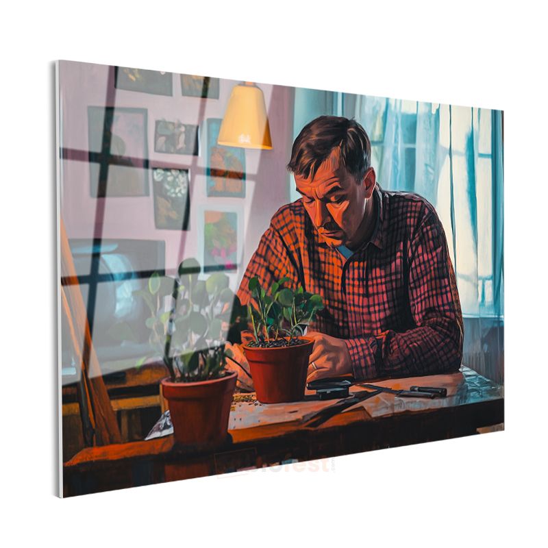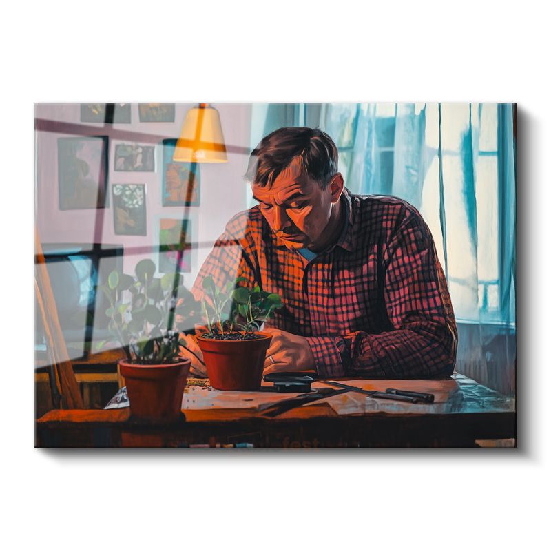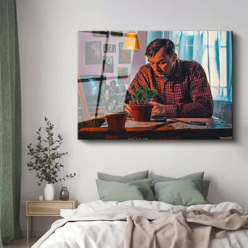 Daniil Antropov - Bitkilerle Çalışan Adam Cam Tablo
