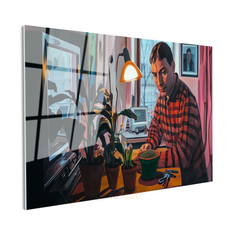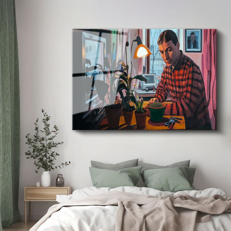 Daniil Antropov - Çiçek Yetiştiren Adam Cam Tablo