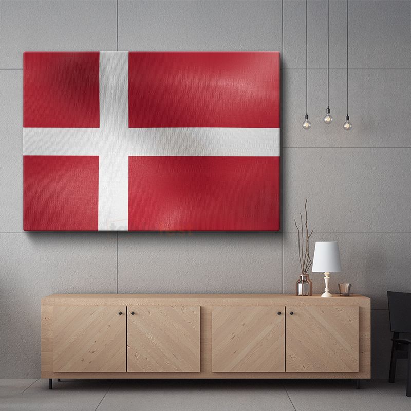 Danimarka Bayrağı - Dalgalı Görünüm Kanvas Tablo