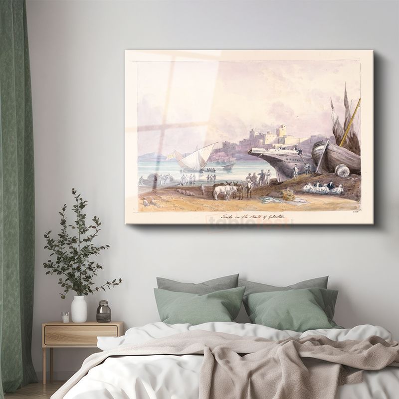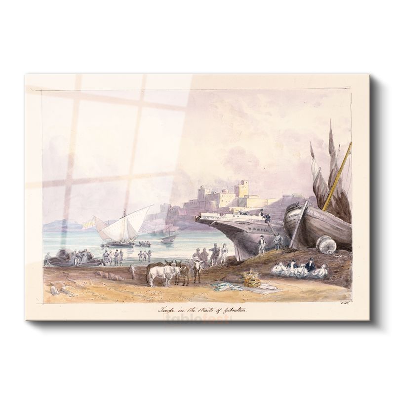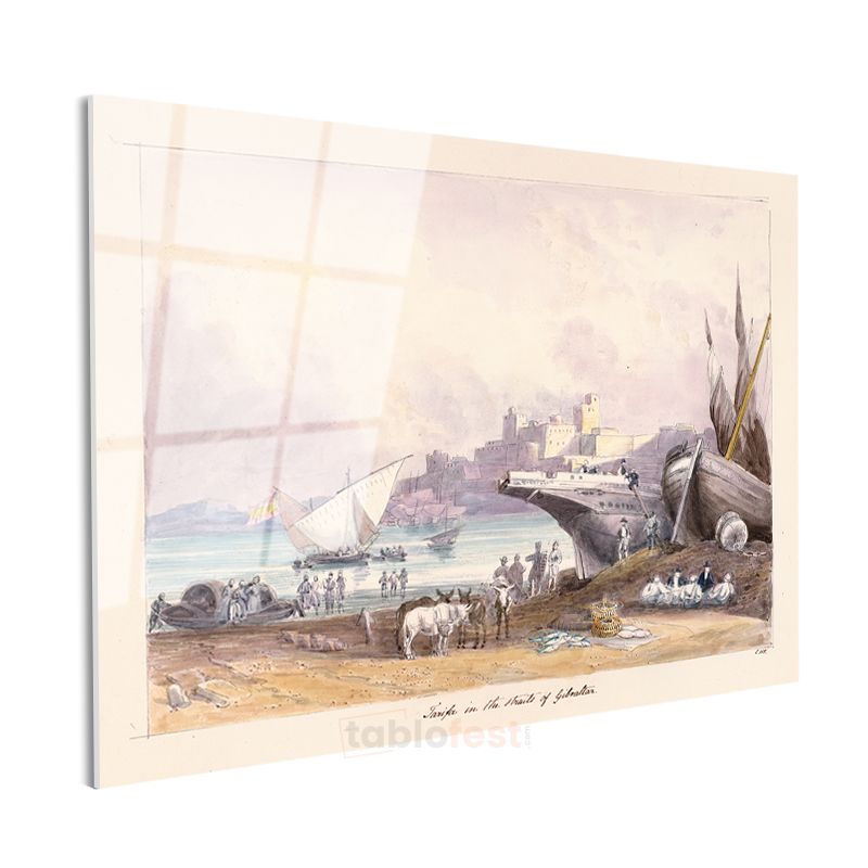 David Roberts - Cebelitarık Boğazı Manzarası Cam Tablo