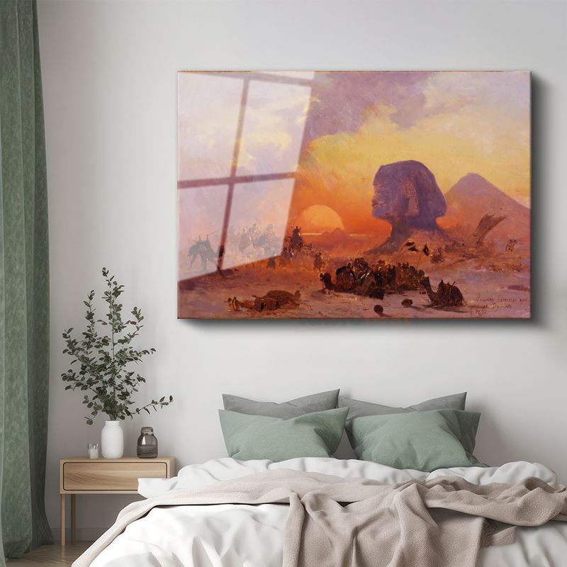 David Roberts - Mısır Sfenksi ve Piramitler Günbatımı Cam Tablo
