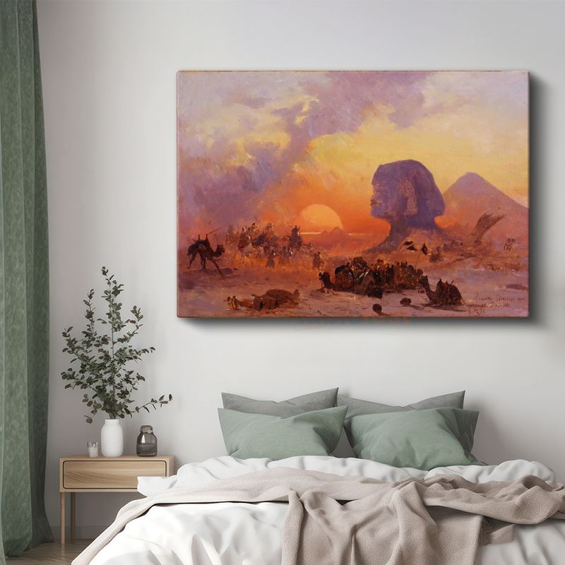 David Roberts - Mısır Sfenksi ve Piramitler Günbatımı Kanvas Tablo