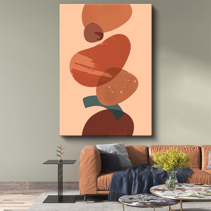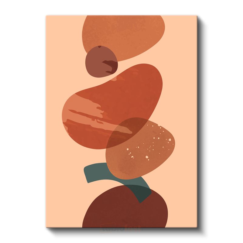 Denge Kompozisyonu - Turuncu Kahve Tonlarında Soyut Şekiller Kanvas Tablo