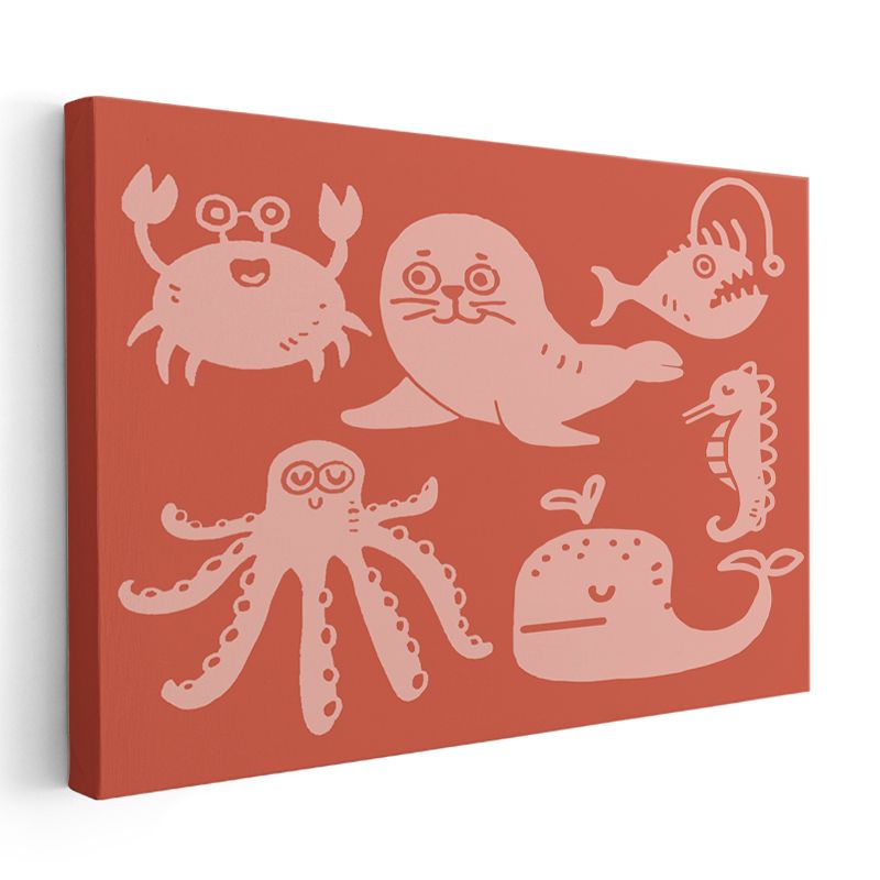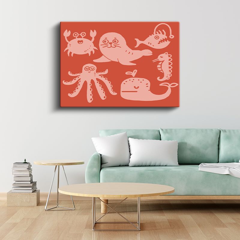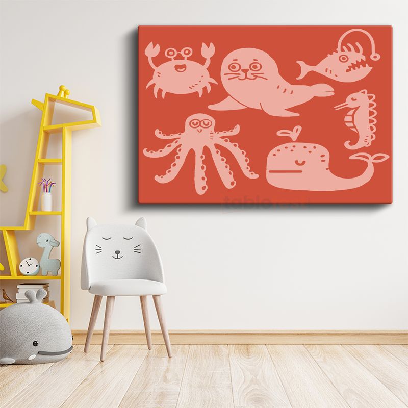 Deniz Canlıları - Eğlenceli Deniz Yaratıkları Kanvas Tablo