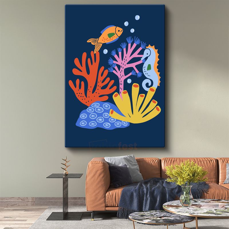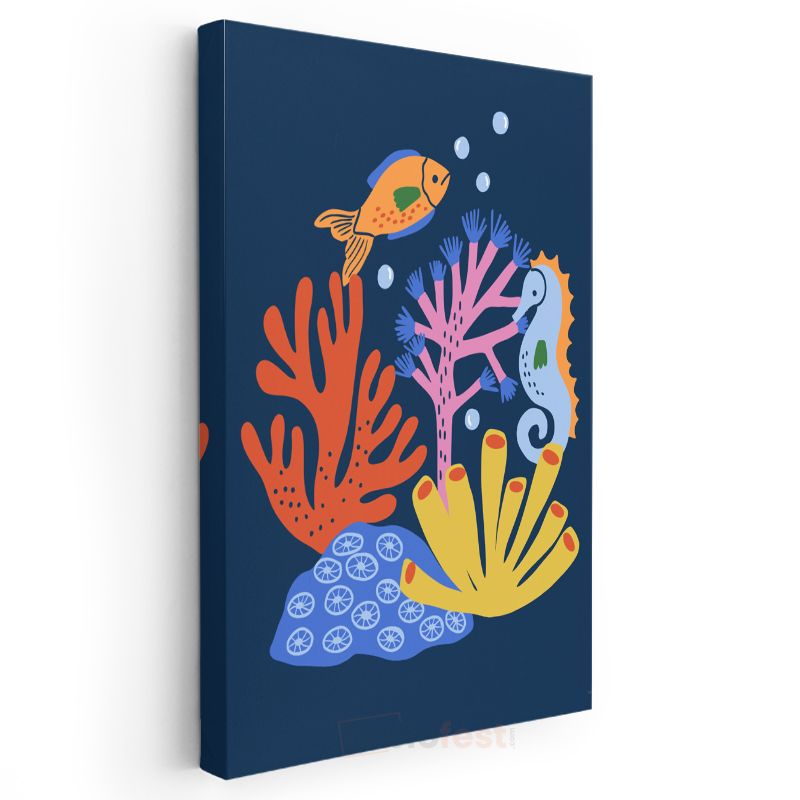 Deniz Canlıları - Renkli Vektörel Mercan Resifi Kanvas Tablo