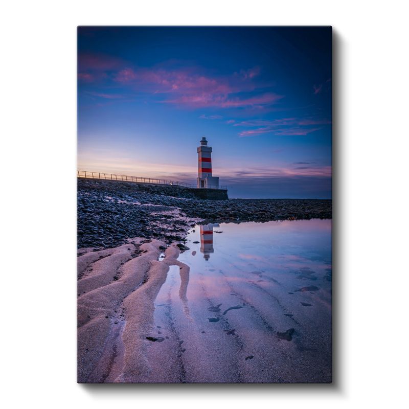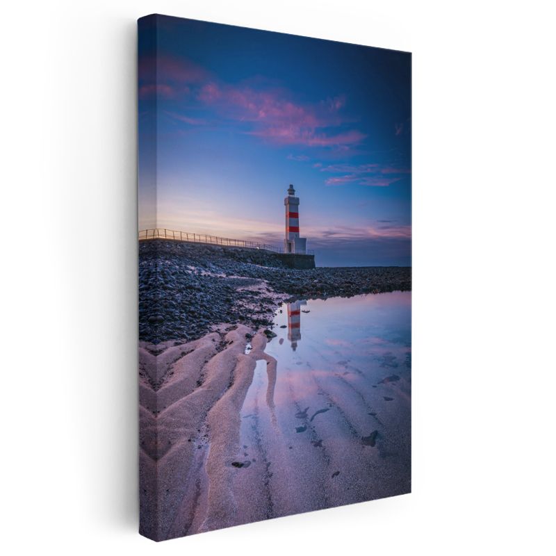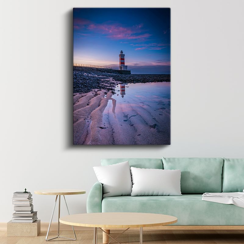 Deniz Feneri - Alacakaranlıkta Kumsal Yansımaları Kanvas Tablo