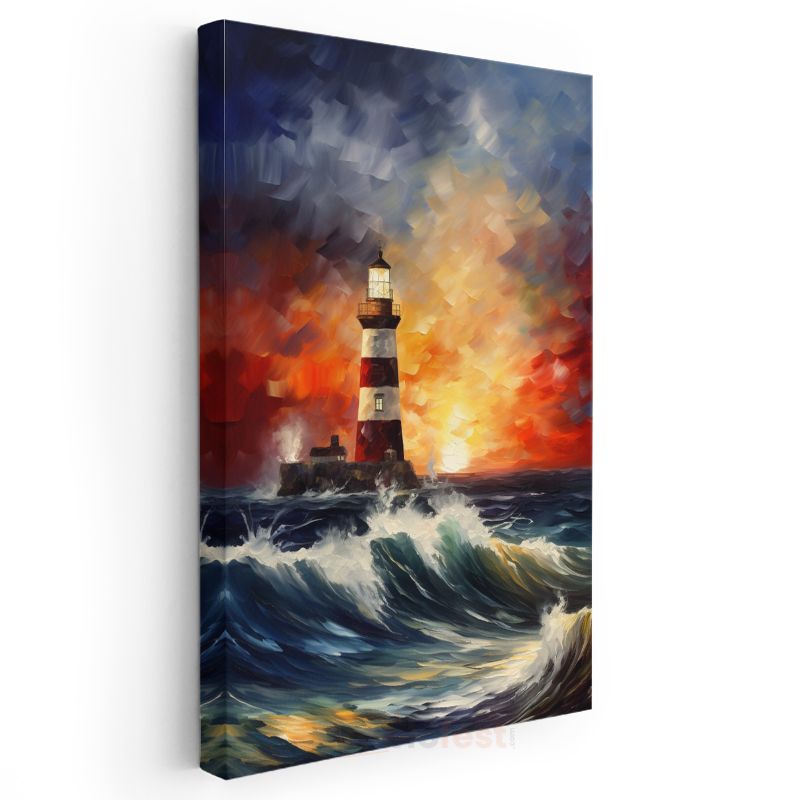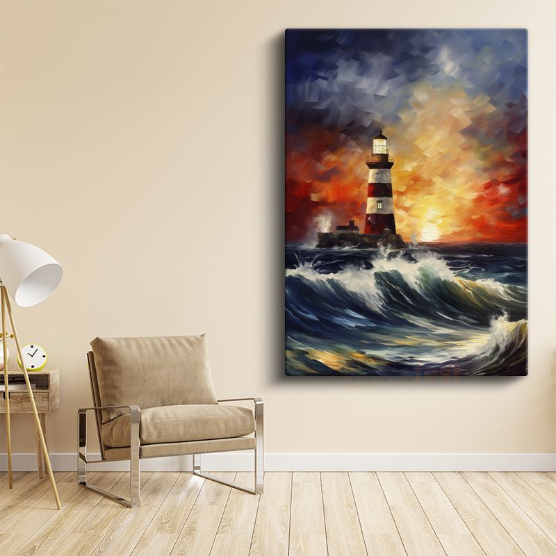 Deniz Feneri - Dalgalar Arasında Kanvas Tablo