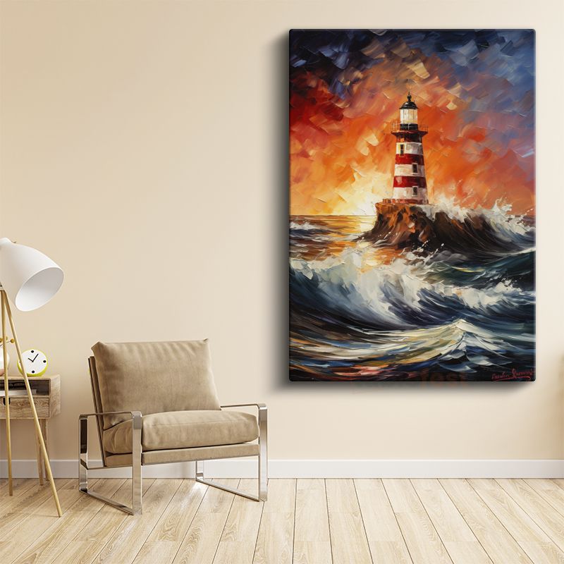 Deniz Feneri - Dalgalar Arasında Kanvas Tablo