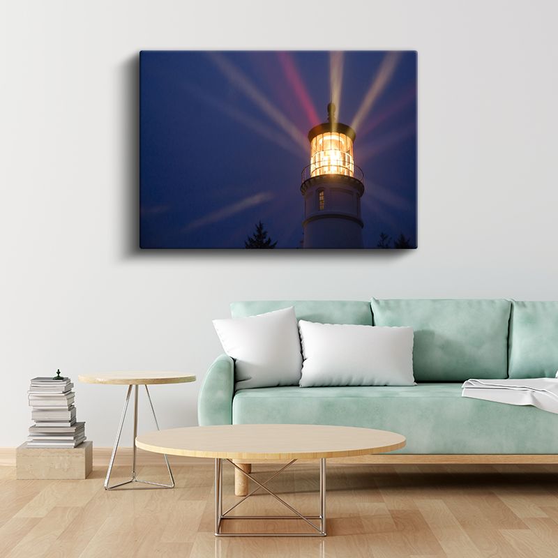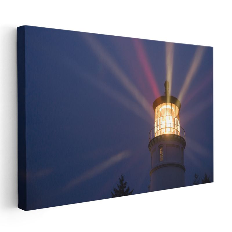 Deniz Feneri - Gecenin Karanlığında Parlayan Işık Huzmesi Kanvas Tablo