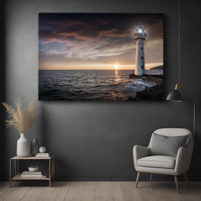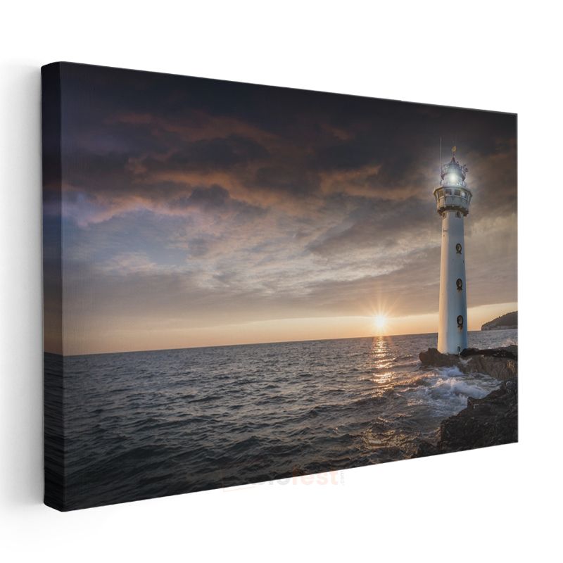 Deniz Feneri - Gün Batımında Huzur Veren Işık Kanvas Tablo