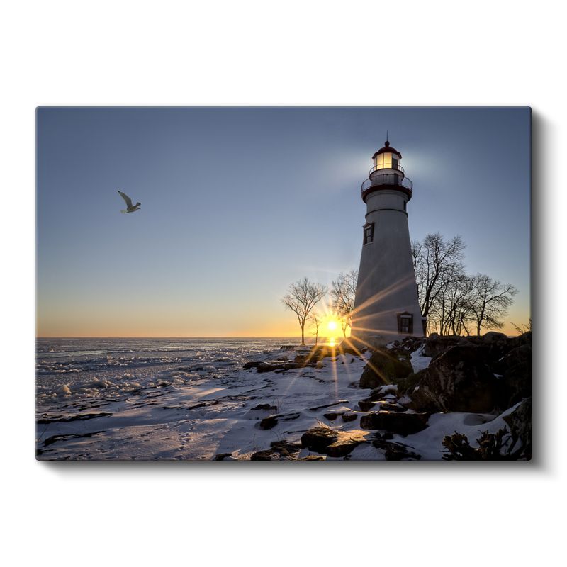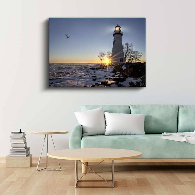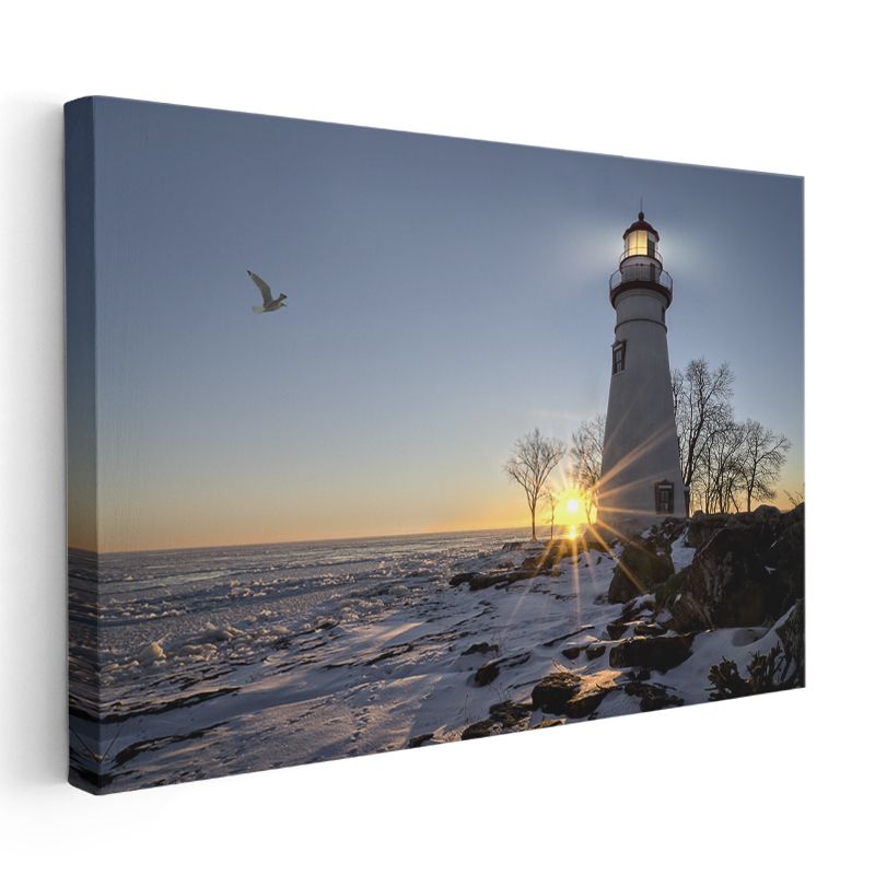 Deniz Feneri - Kış Gün Batımı Kanvas Tablo