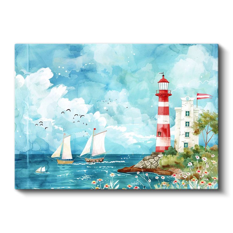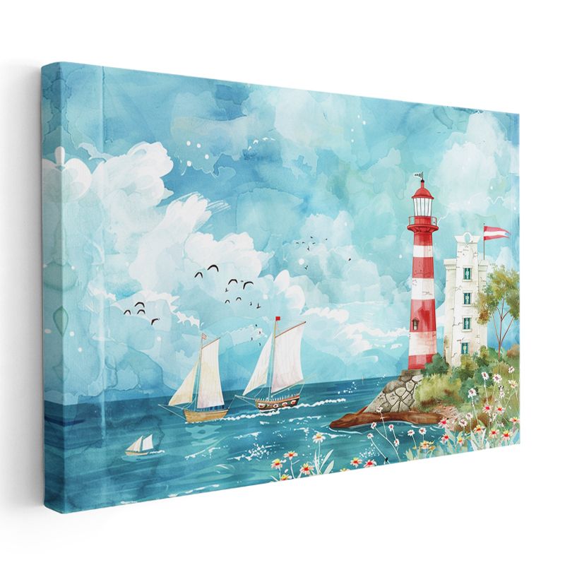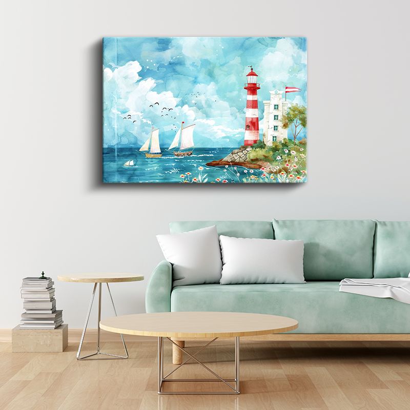Deniz Feneri - Yelkenliler Temalı Dekoratif Kanvas Tablo
