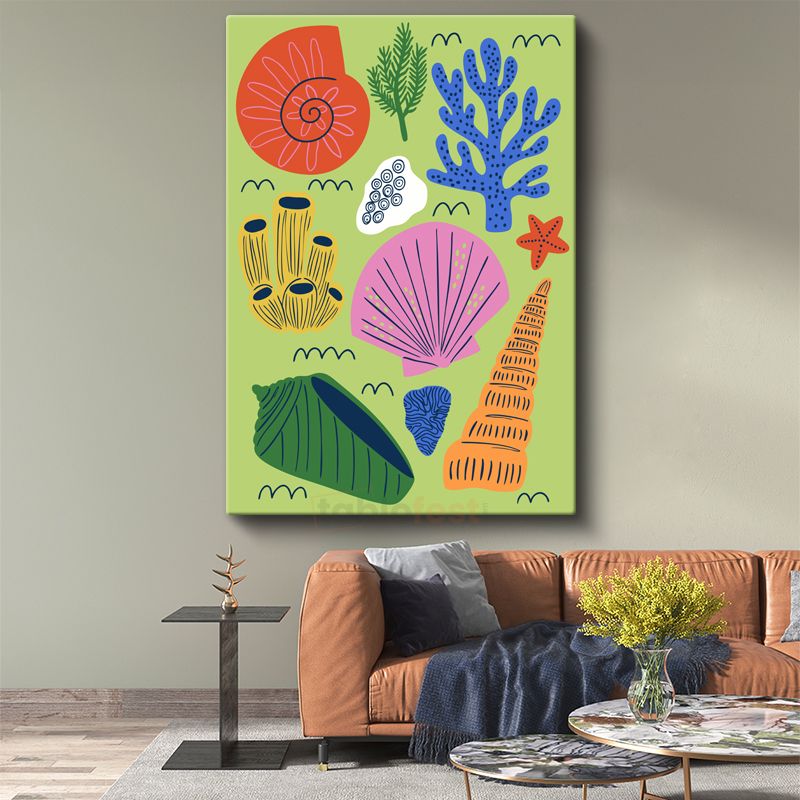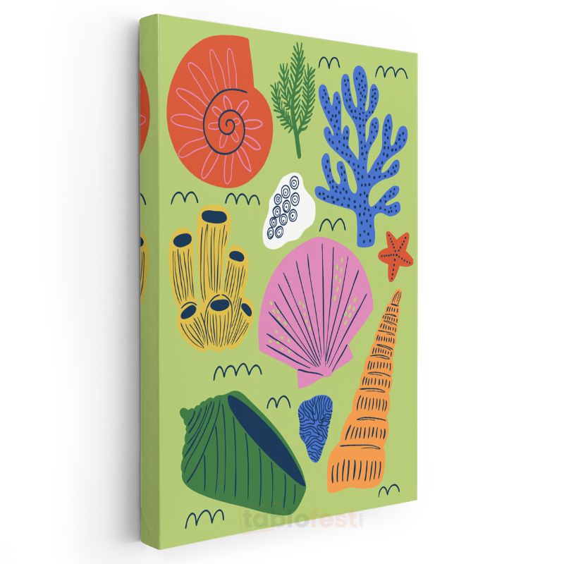 Deniz Hazineleri - Renkli Kabuklar Koleksiyonu Kanvas Tablo