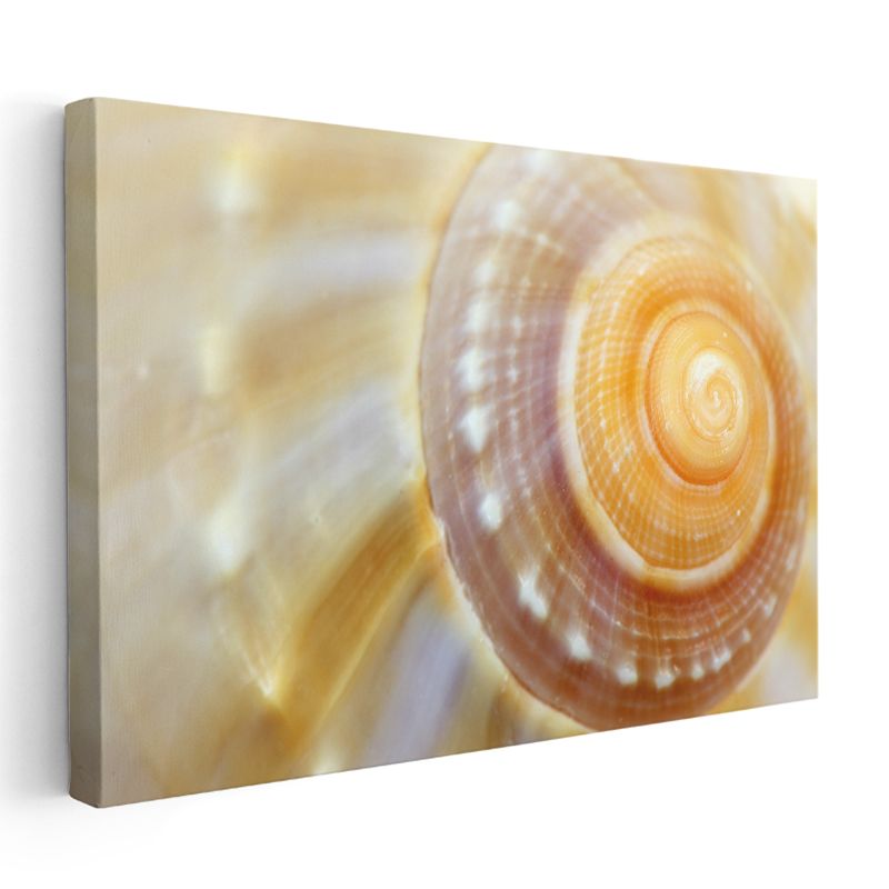 Deniz Kabuğu - Altın Spiral Desen Kanvas Tablo