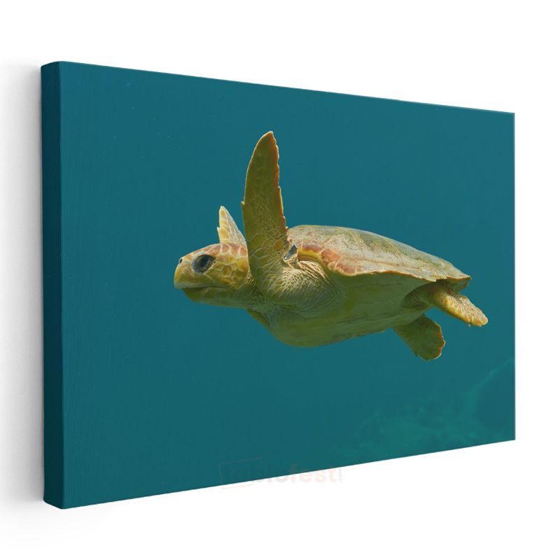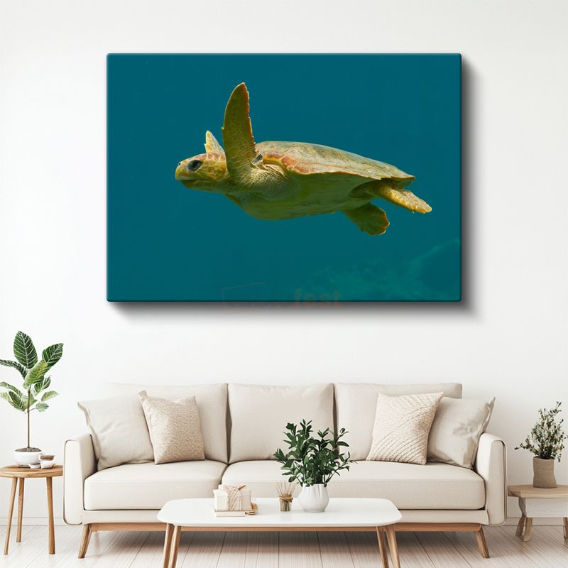 Deniz Kaplumbağası - Turkuaz Suda Özgür Yüzüş Kanvas Tablo