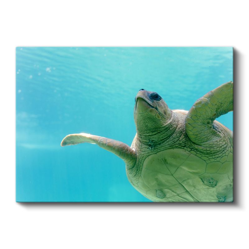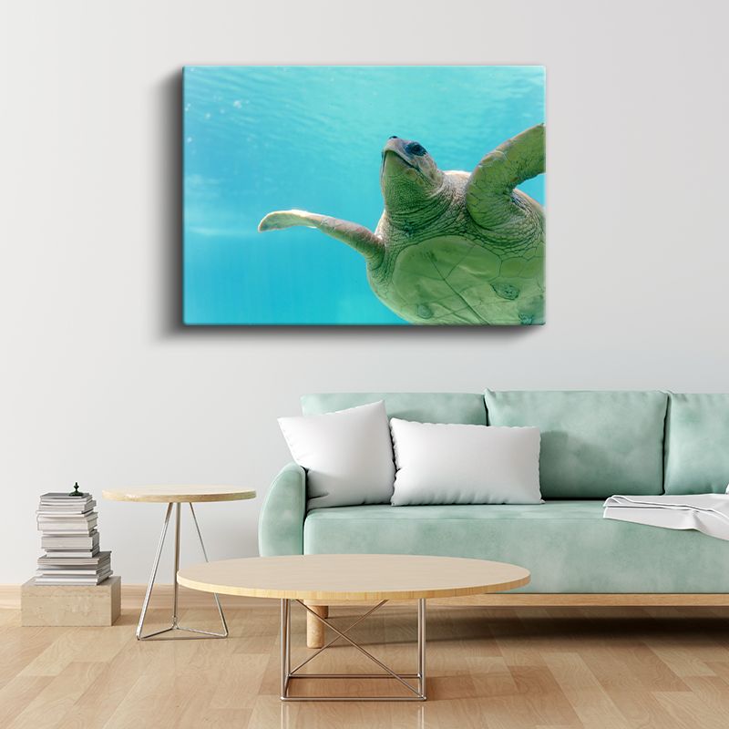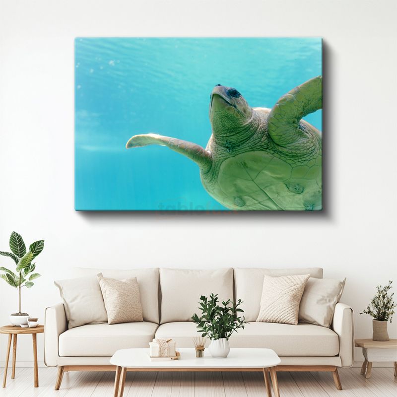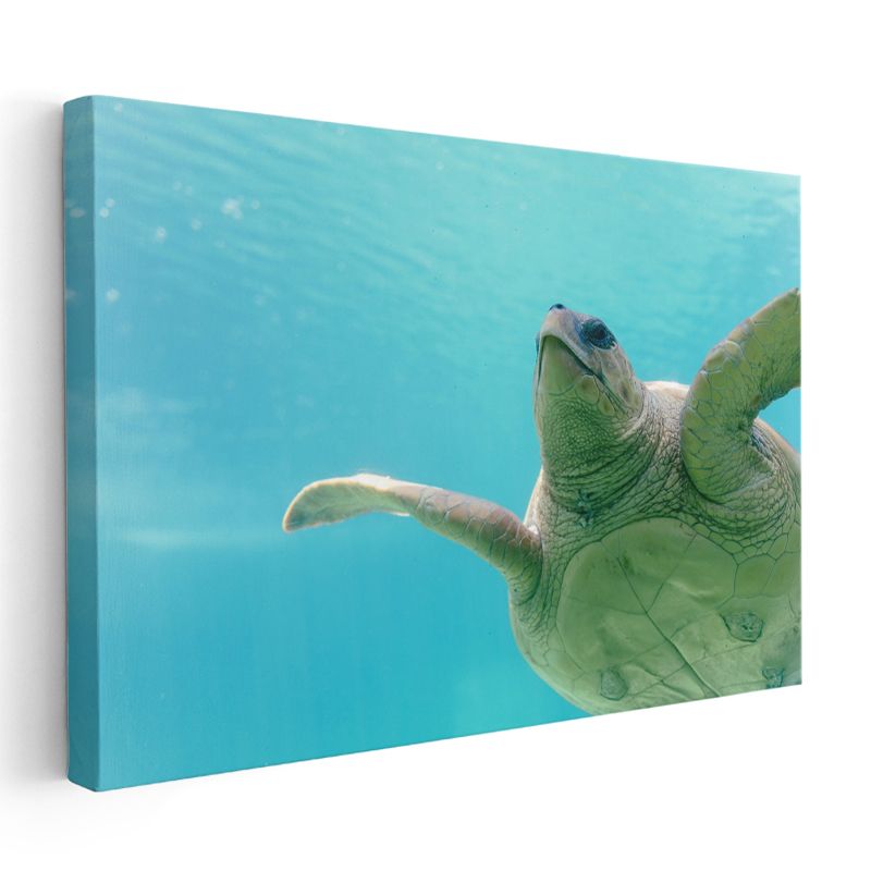 Deniz Kaplumbağası - Turkuaz Suda Zarif Yüzüş Kanvas Tablo