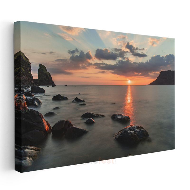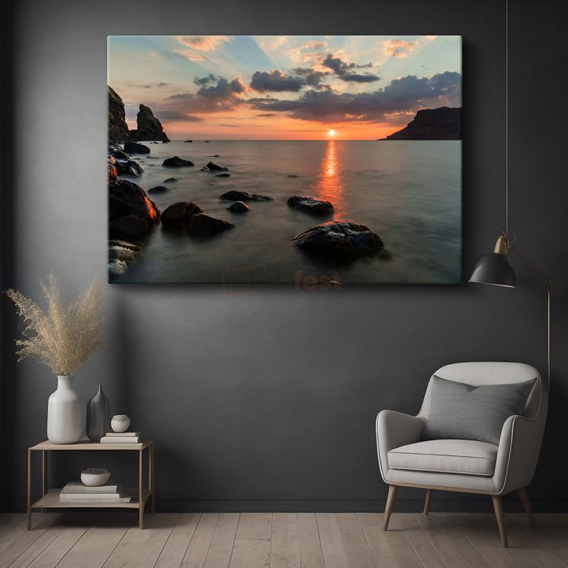 Deniz Kıyısı - Sakin Sularda Yansıyan Günbatımı Işıltısı Kanvas Tablo