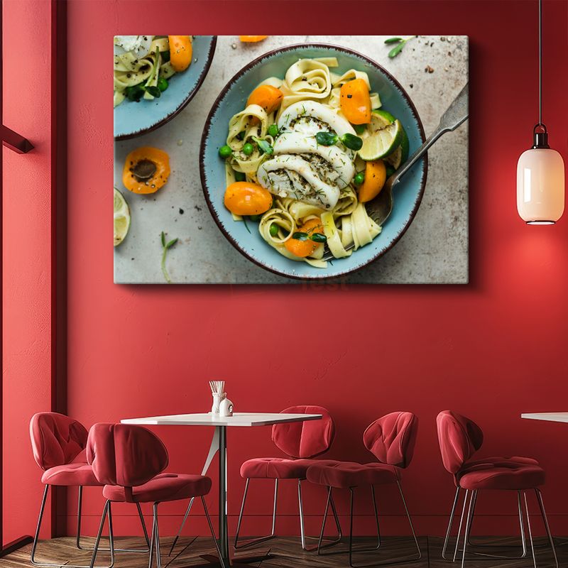 Deniz Mahsullü Makarna - Taze Malzemelerle Hazırlanmış Tabak Kanvas Tablo