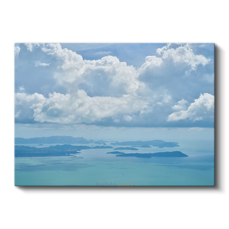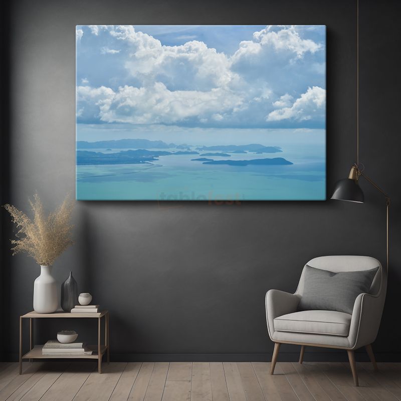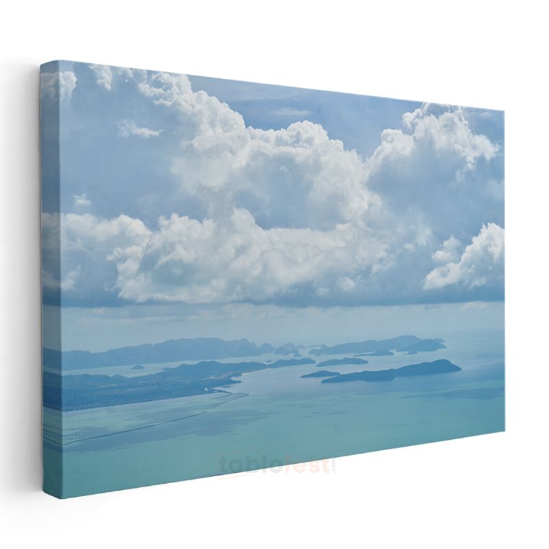 Deniz Manzarası - Bulutların Altında Mavi Adalar Kanvas Tablo