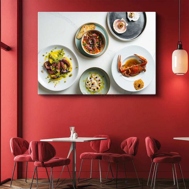 Deniz Ürünleri Şöleni - Gurme Sunum Tabakları Kanvas Tablo