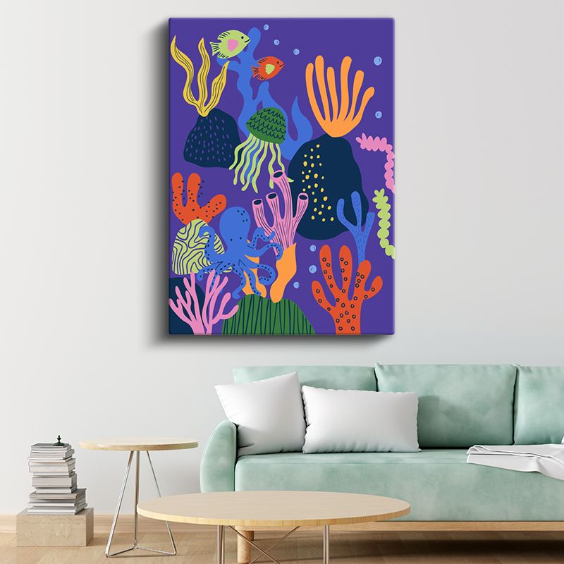 Deniz Yaşamı - Renkli Mercan Resifi Kanvas Tablo