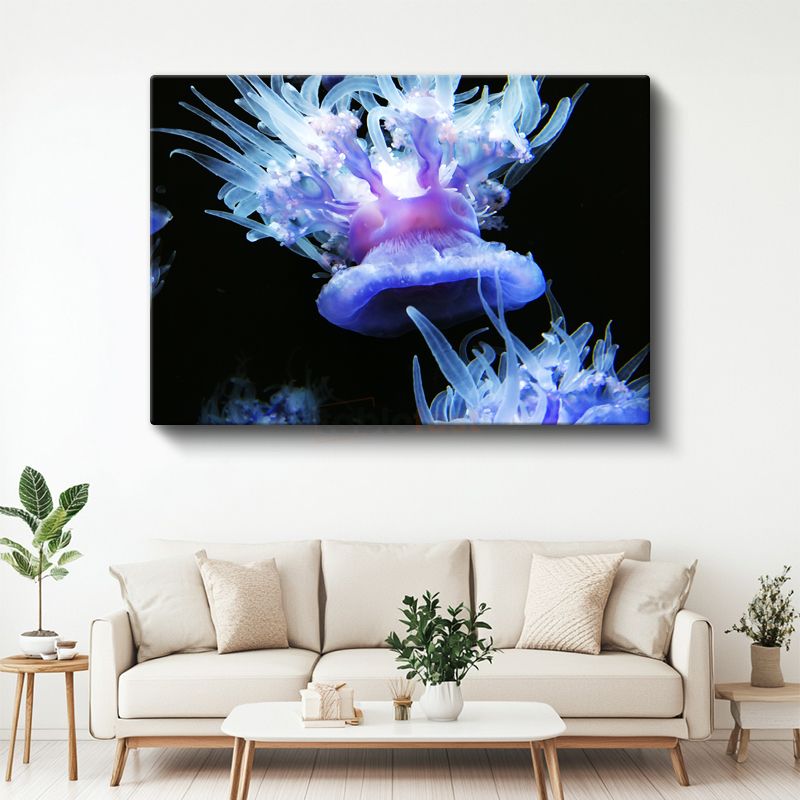 Denizanası Dansı - Derin Maviliklerde Işıltılı Görünüm Kanvas Tablo