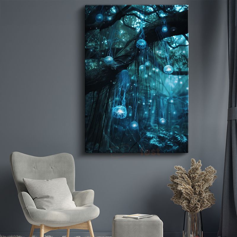 Denizin Ağacı - Biyolüminesan Denizanaları Dansı Kanvas Tablo