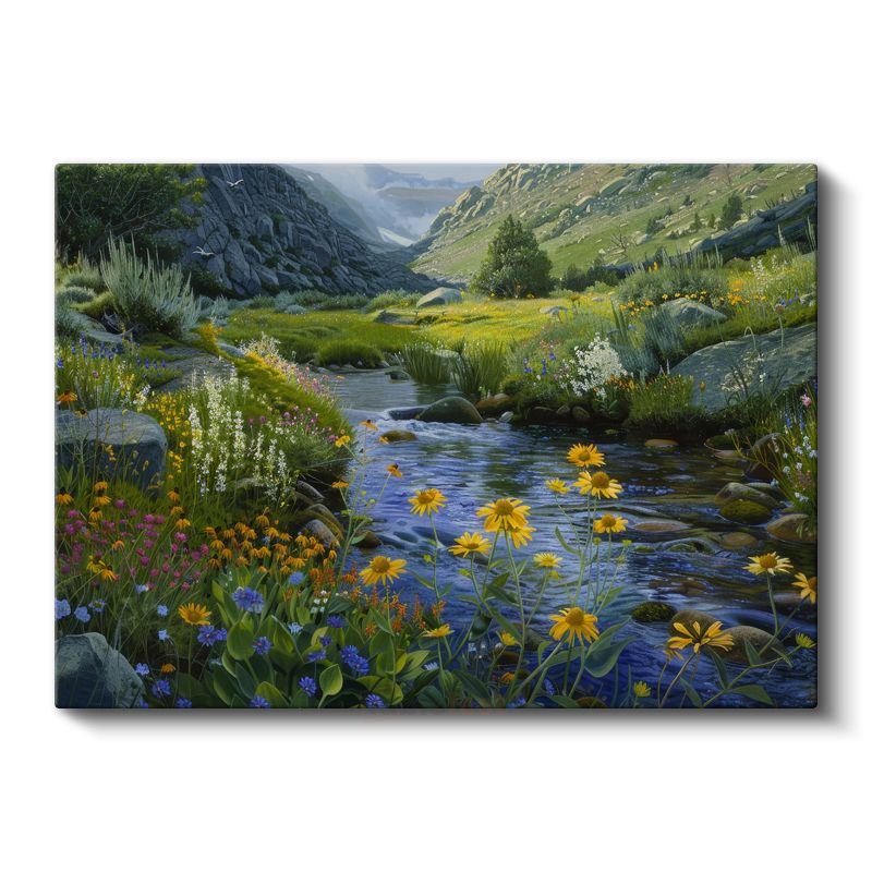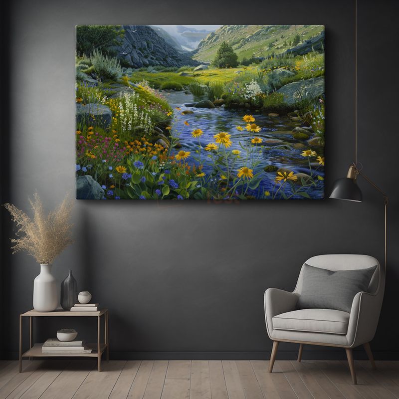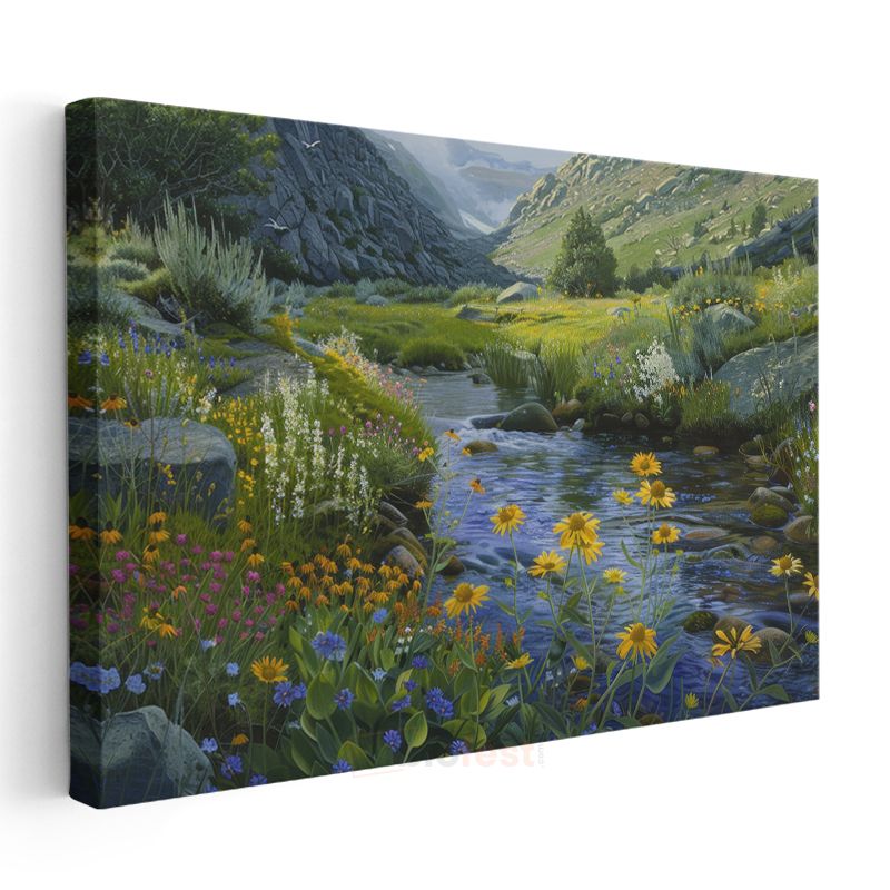 Dere Kenarı - Yabani Çiçeklerle Süslü Vadi Kanvas Tablo