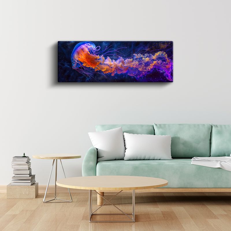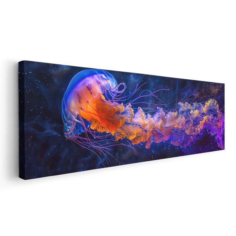 Derin Denizanası - Mor ve Turuncu Tonlarında Denizanası Kanvas Tablo