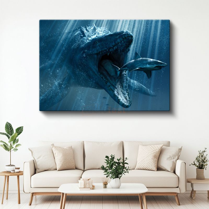 Derin Denizlerin Hakimi - Avını Yakalayan Prehistorik Deniz Canavarı Kanvas Tablo