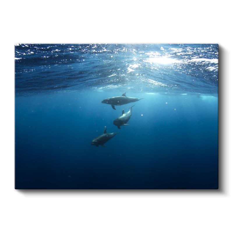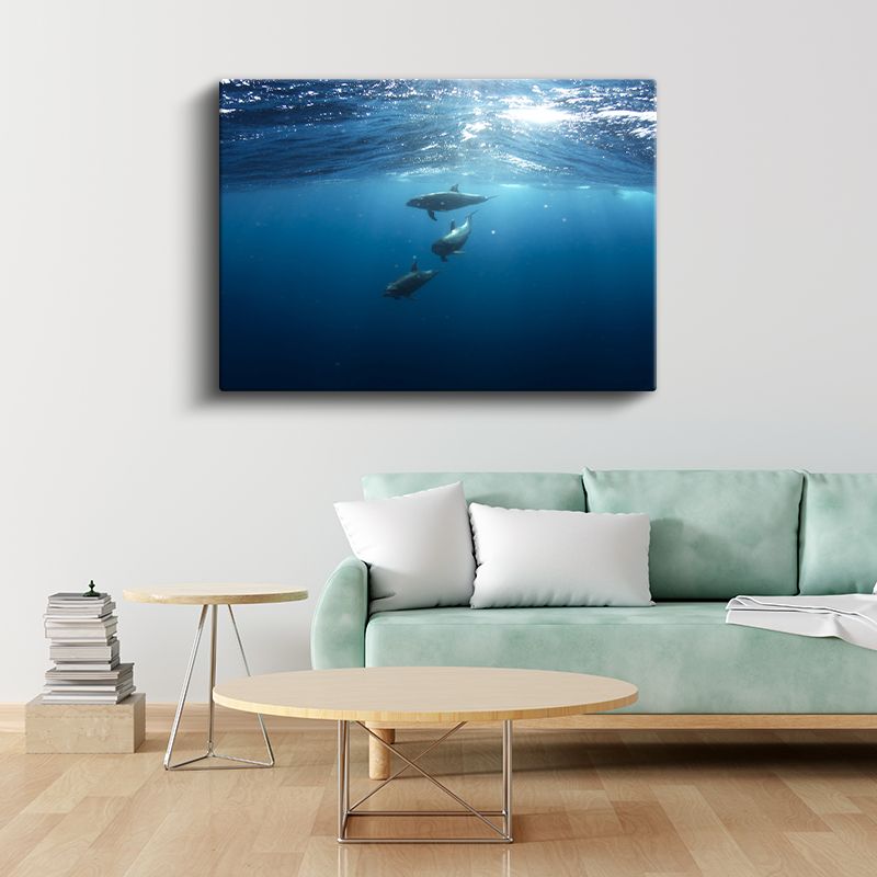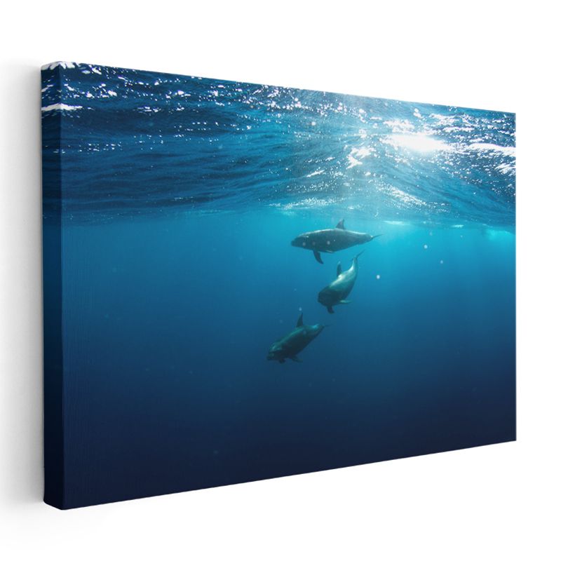 Derin Mavilik - Güneş Işığında Yüzen Yunuslar Kanvas Tablo