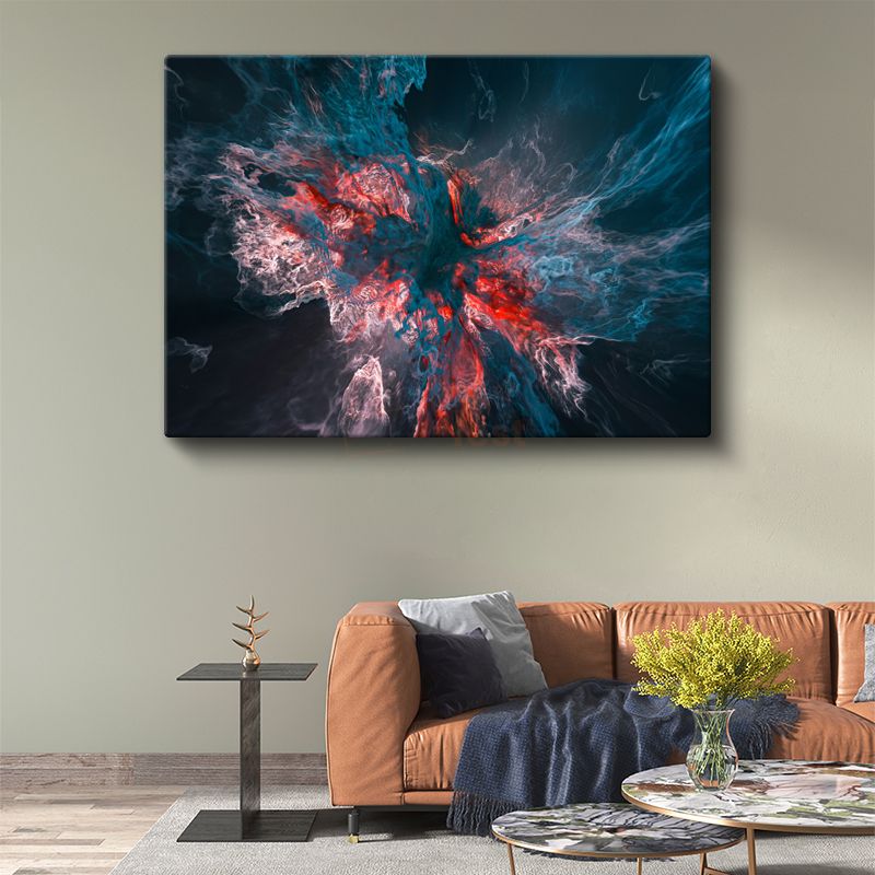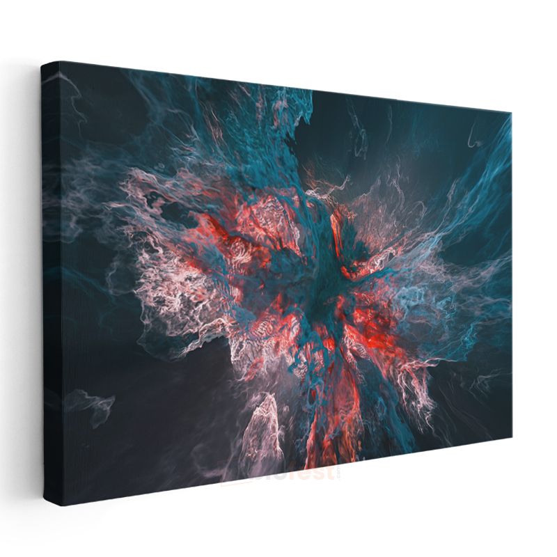 Derin Patlama - Mavi ve Kırmızı Tonlarında Kozmik Enerji Kanvas Tablo