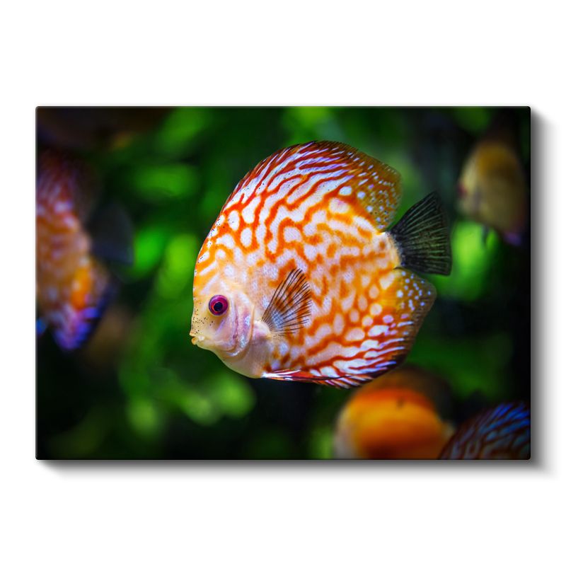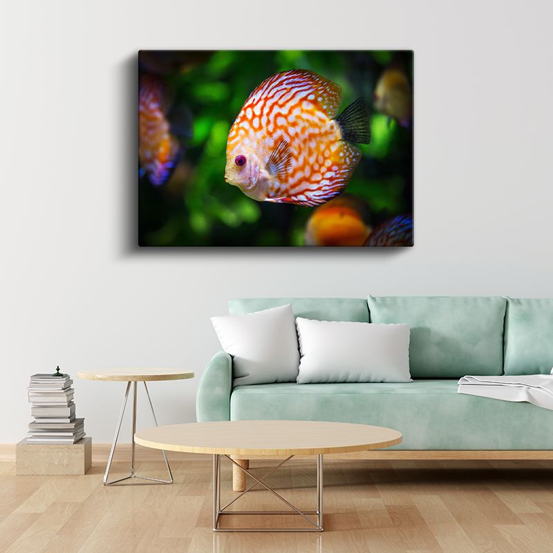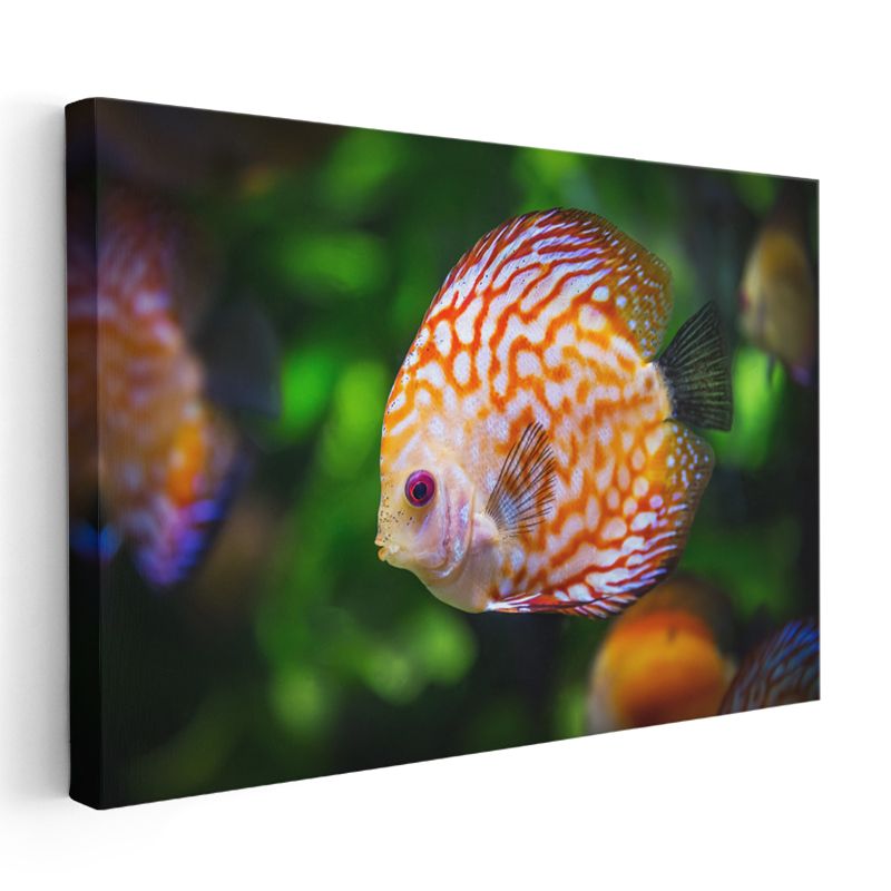 Desenli Diskus Balığı - Turuncu Beyaz Egzotik Güzellik Kanvas Tablo