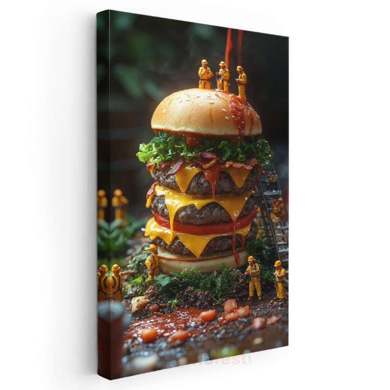 Dev Hamburger - Katmanlı Fast Food Kanvas Tablo