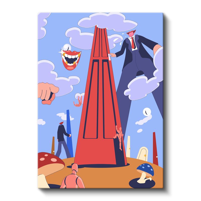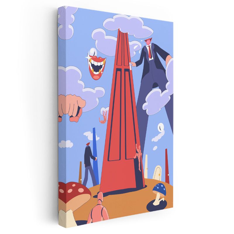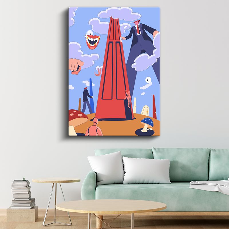 Devlerin Dünyası - Kırmızı Kule Etrafında Dans Kanvas Tablo