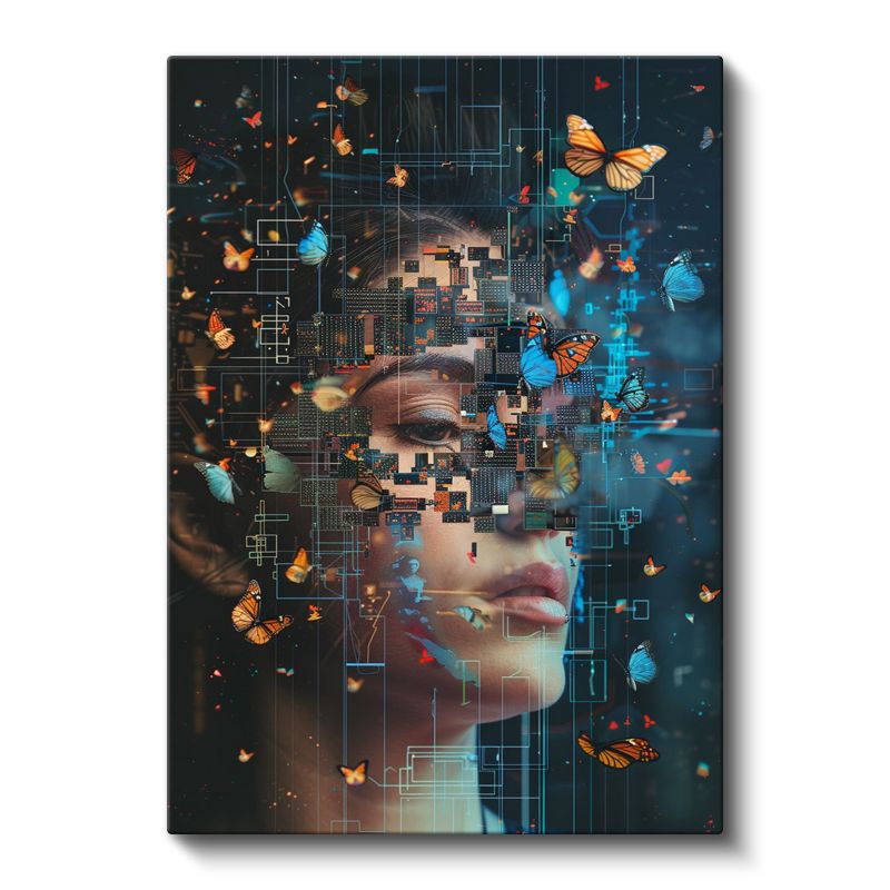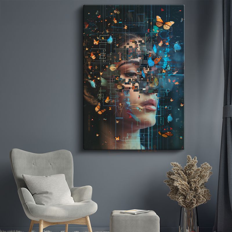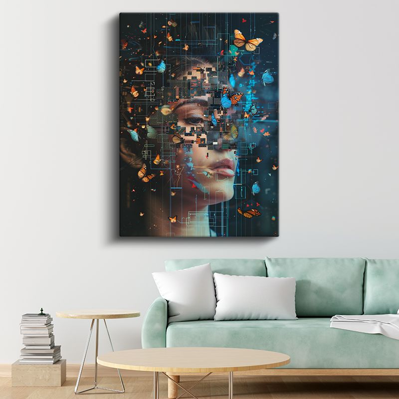 Dijital Kelebek Etkisi - Teknoloji ve Doğanın Kesişimi Kanvas Tablo