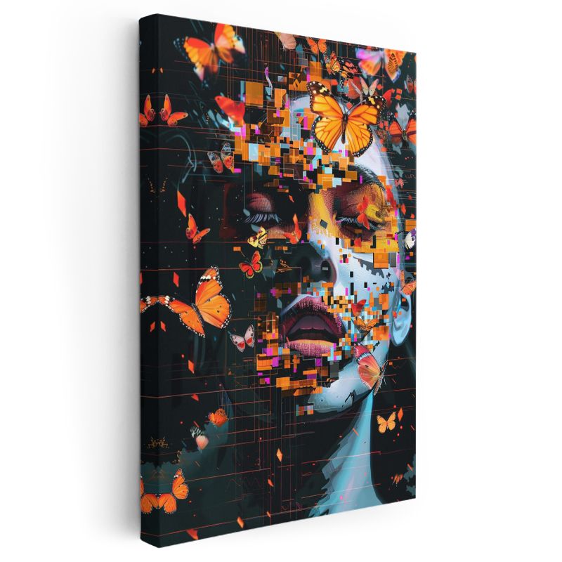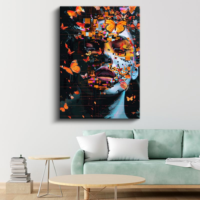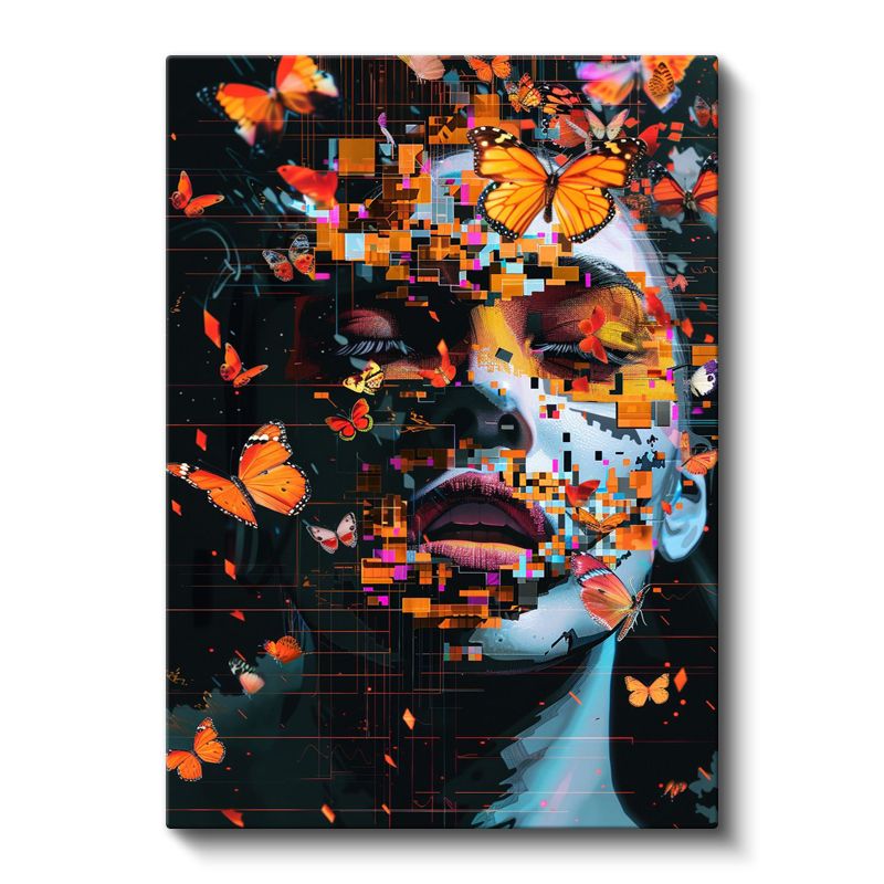Dijital Metamorfoz - Kelebekler ve Parçalanmış Gerçeklik Kanvas Tablo