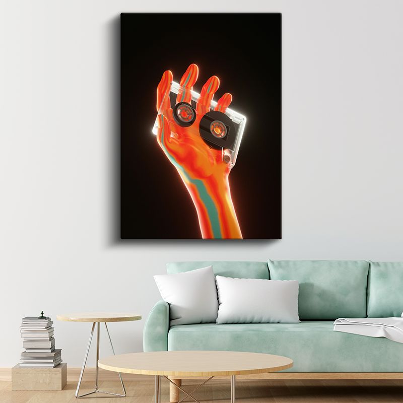 Dijital Nostalji - Neon Renkli El ve Kaset Vektörel Kanvas Tablo
