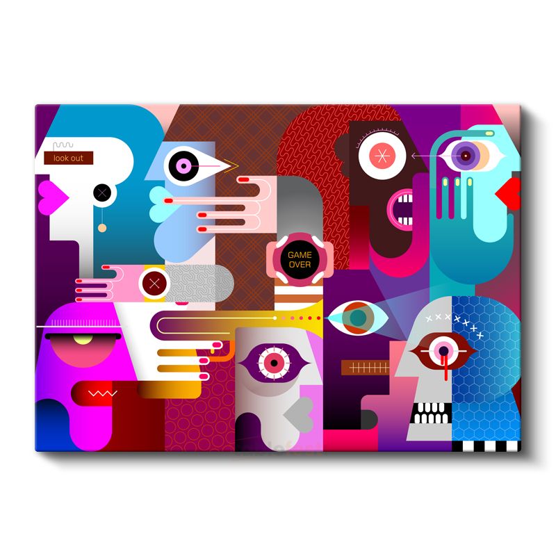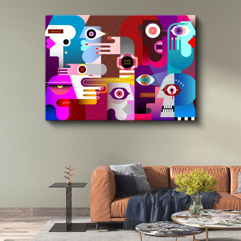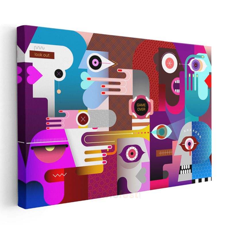 Dijital Yüzler - Modern Soyut Portreler Kolajı Kanvas Tablo